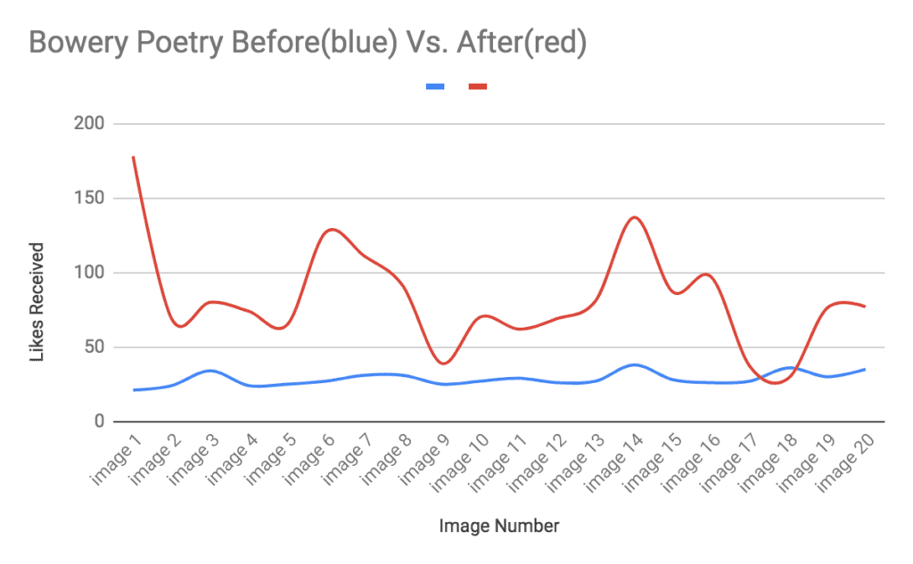 This new strategy yielded great results for the Bowery Poetry Instagram engagement. The very first post got over 170 likes versus the usual 20-30. People mentioned their love for the new theme and poets expressed their desire to be featured. Strategies such as this create an open dialogue between the patrons and the business. Thus increasing reliability and relevance to the target audience.